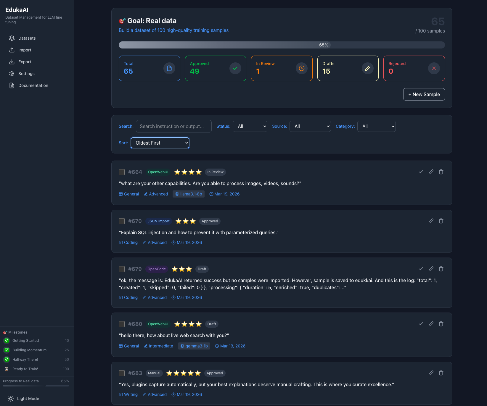 Capture training data automatically while you work. Install plugins for your favorite AI tools and let EdukaAI collect conversations in the background.